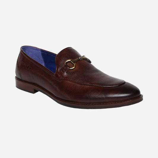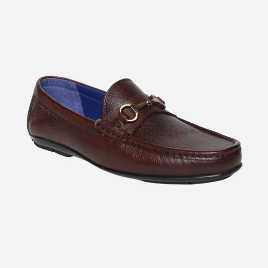 Masabih Genuine Milled Leather Brown Mocassin Shoes with Saddle Ornament for Men