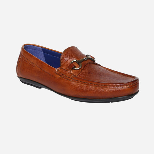 Masabih Genuine Milled Leather Tan Mocassin Shoes with Saddle Ornument for Men