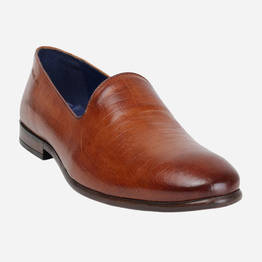 Masabih Tan Genuine Leather Crocodile Plated Stylish Loafers for Men
