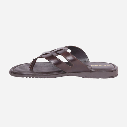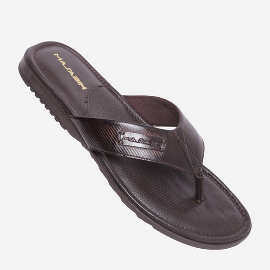 MASABIH Geniune Leather Soft Line Print Brown Color modern thong sandals for Mens
