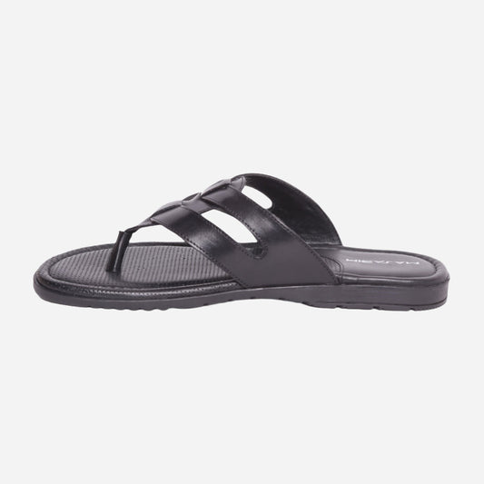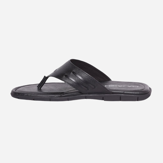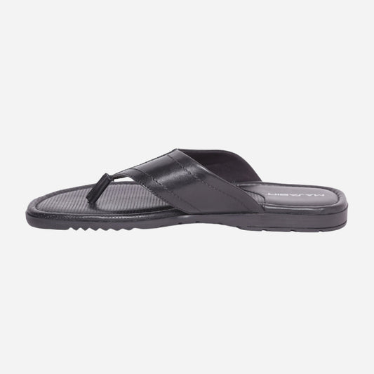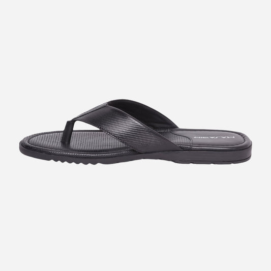 MASABIH Geniune Leather Soft Line Print Black Color modern thong sandals for Mens