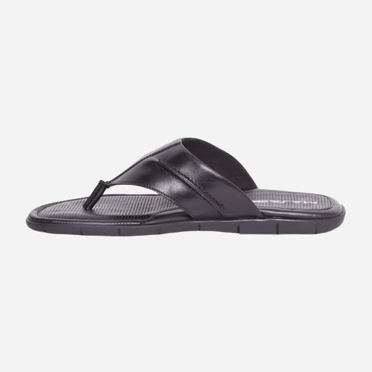 MASABIH Geniune Leather Soft I Print Black Color modern thong sandals for Mens