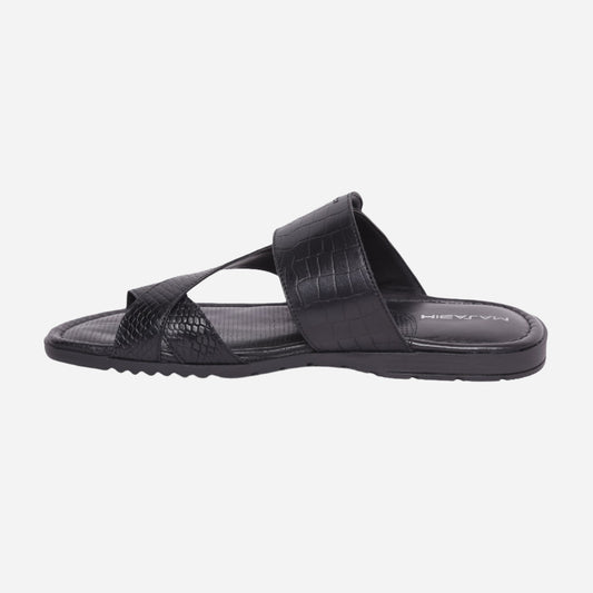 MASABIH Geniune Leather Soft Hexa Print Black Color modern thong sandals for Mens