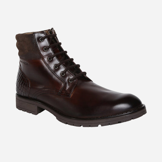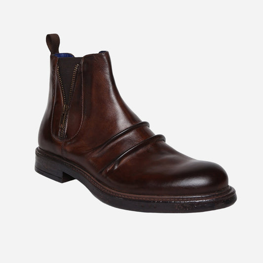 Masabih Genuine Leather Brown Ankle Zipper Boots for Men