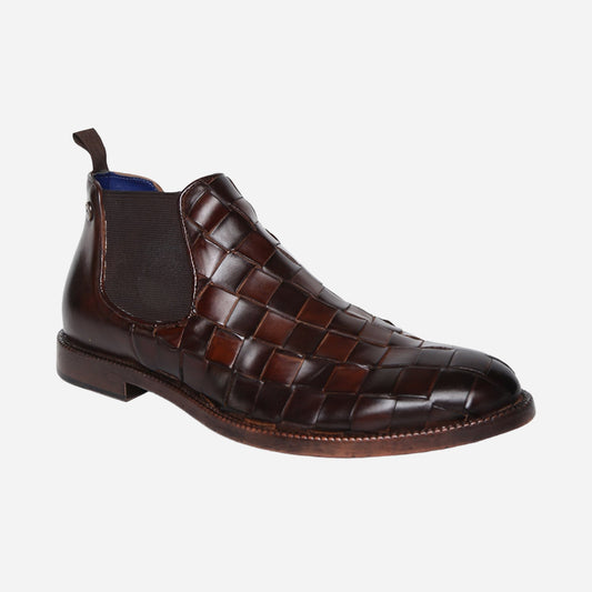 Masabih Genuine Leather Brown Braided Chelsea Boots for Men