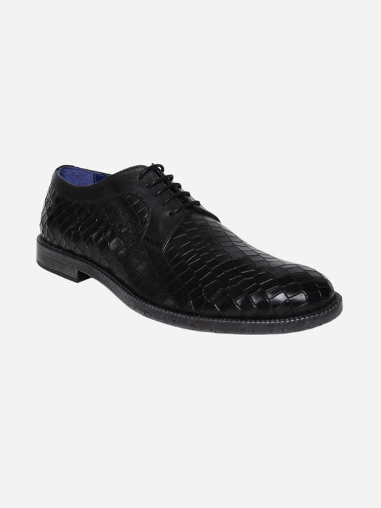 Masabih Genuine Leather Black Printed Casual Derby Laceup Shoes For Men