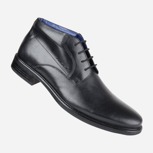MASABIH GENUINE LEATHER BLACK LACEUP CHUKKA BOOTS FOR MEN