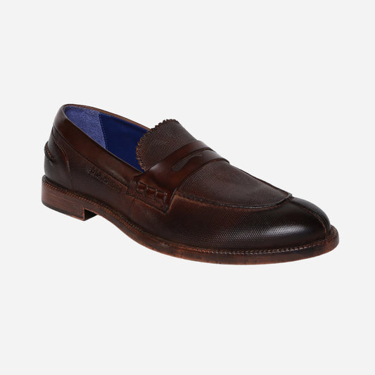 Masabih Genuine Leather Brown Printed Loafer Slipon Shoes for Men