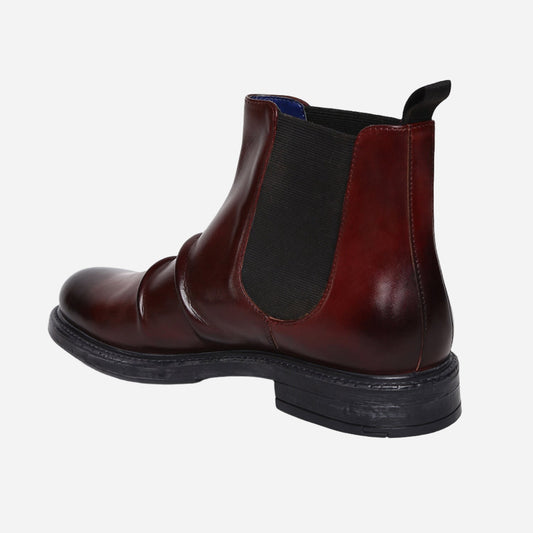 Masabih Genuine Leather Burgundy Casual Chelsea Boots with Zipper for Men