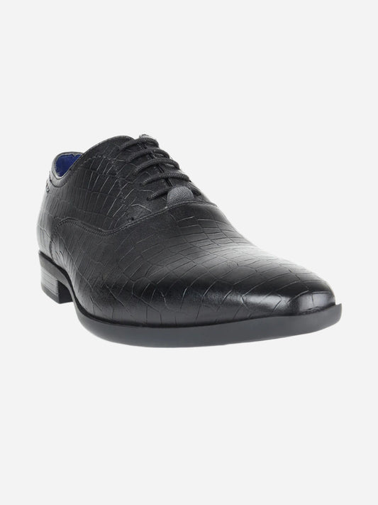 Masabih Genuine Leather Black Crocodile Printed Casual Oxford Laceup Shoes For Men