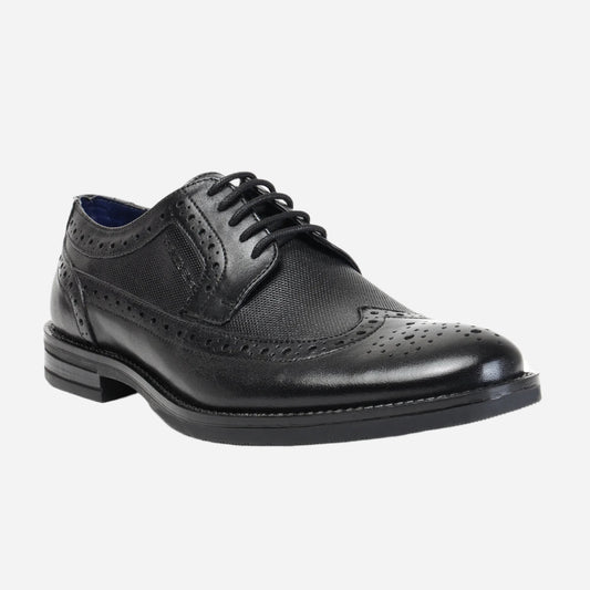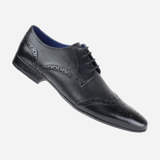 MASABIH GENUINE LEATHER BLACK CASUAL WING TOE DERBY LACEUP SHOES FOR MEN