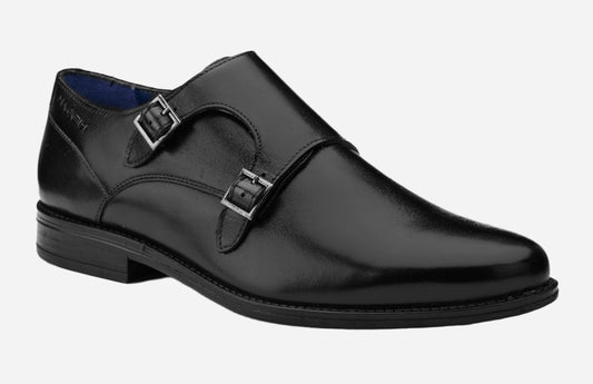 Masabih Genuine Leather Black Casual Double Monk Shoes for Men