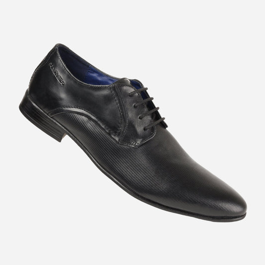 MASABIH GENUINE LEATHER BLACK DERBY LACEUP SHOES FOR MEN