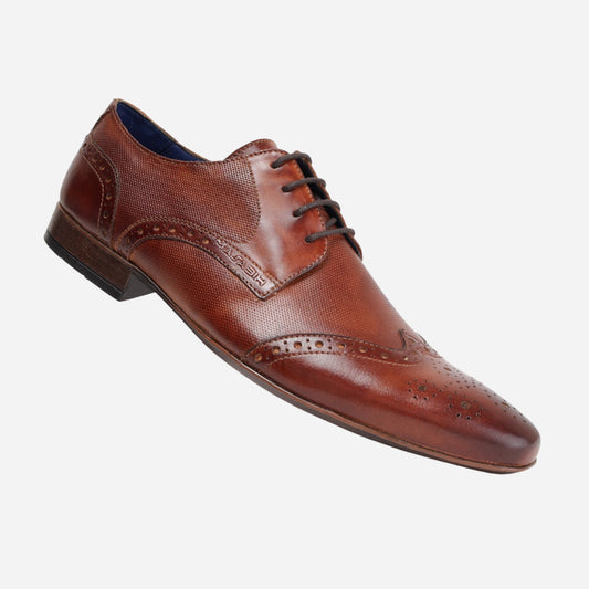 MASABIH GENUINE LEATHER TAN CASUAL WING TOE DERBY LACEUP SHOES FOR MEN