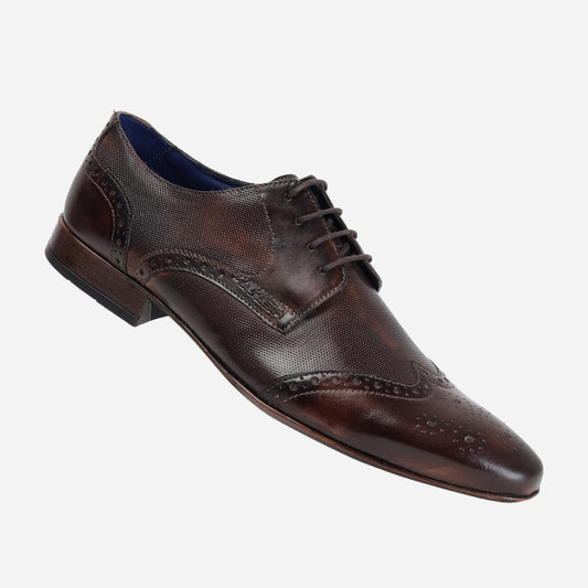 MASABIH GENUINE LEATHER BROWN CASUAL WING TOE DERBY LACEUP SHOES FOR MEN
