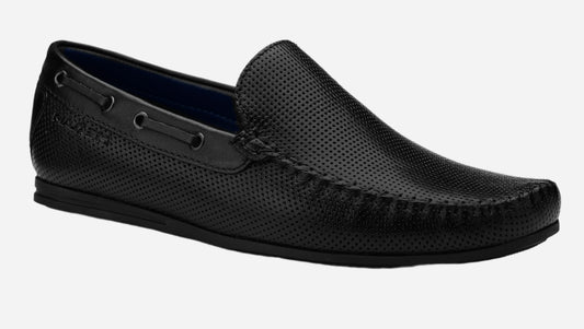 Masabih Genuine Leather Black Mocassin Shoes with Flat Sole for Men