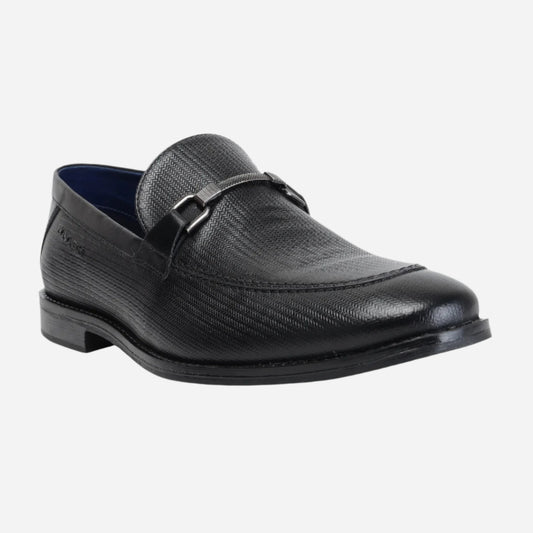 Masabih Genuine Printed Leather Black Loafer Slipon Shoes for Men