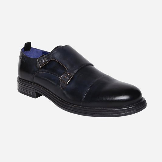 MASABIH GENUINE LEATHER NAVY CASUAL DOUBLE MONK SHOES FOR MEN
