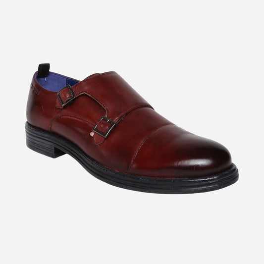 MASABIH GENUINE LEATHER BURGUNDY CASUAL DOUBLE MONK SHOES FOR MEN