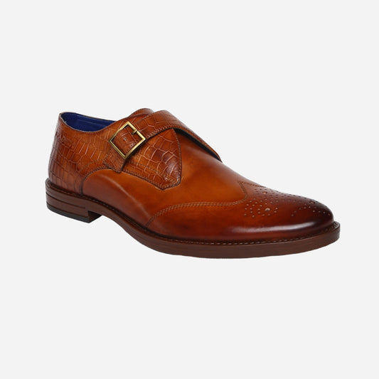 MASABIH GENUINE LEATHER TAN CASUAL MONK SHOES FOR MEN