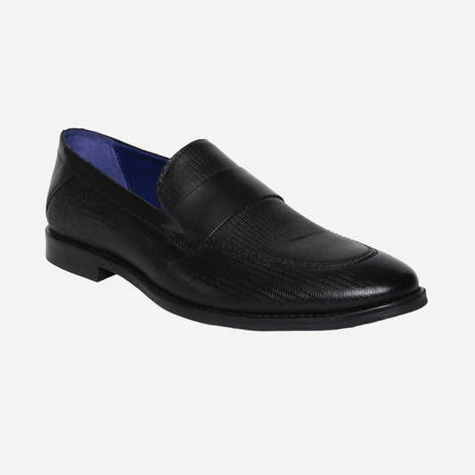 Masabih Genuine Leather Black Printed Loafer Slipon Shoes for Men