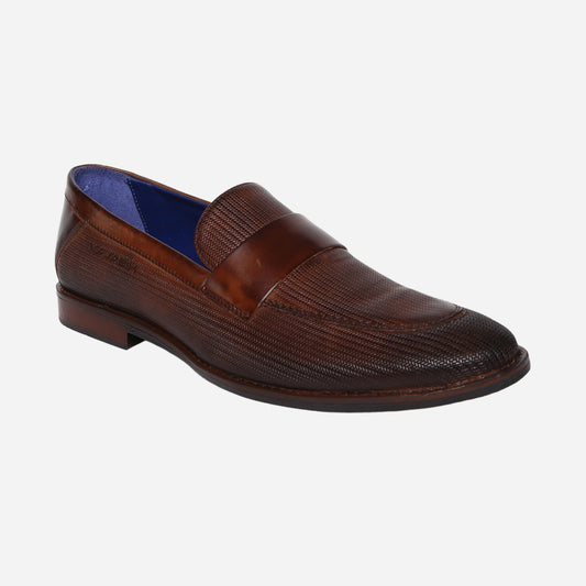 Masabih Genuine Leather Brown Printed Loafer Slipon Shoes for Men
