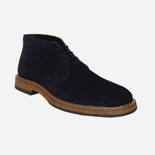 Navy Genuine Suede Leather Chukka Lace Up Boots For Men