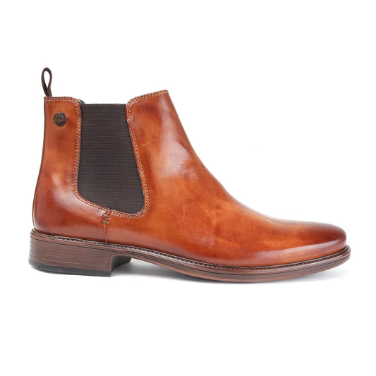 MASABIH GENUINE LEATHER TAN CHELSEA BOOTS FOR MEN