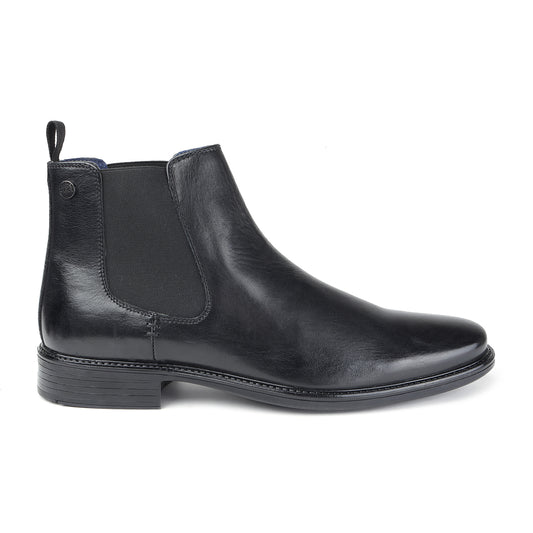 MASABIH GENUINE LEATHER BLACK CHELSEA BOOTS FOR MEN